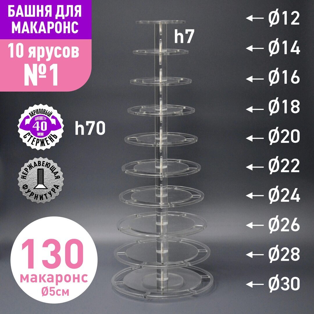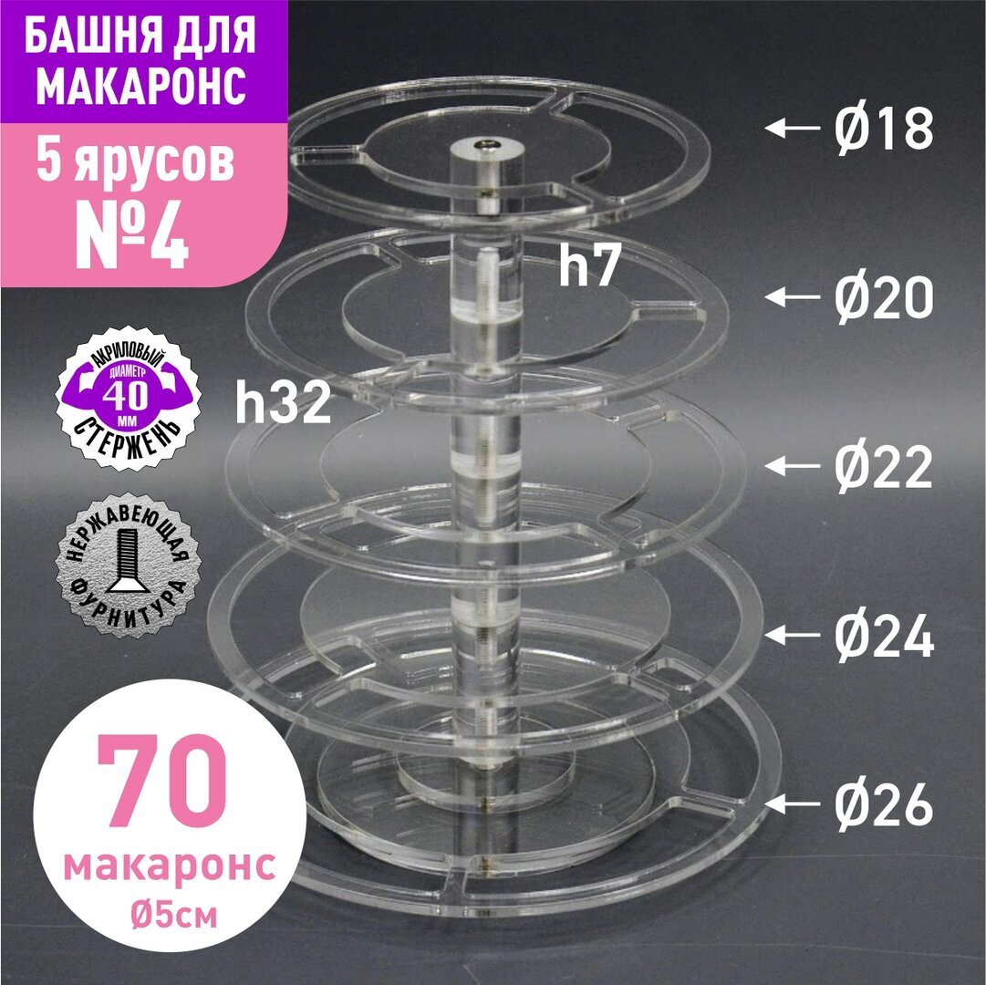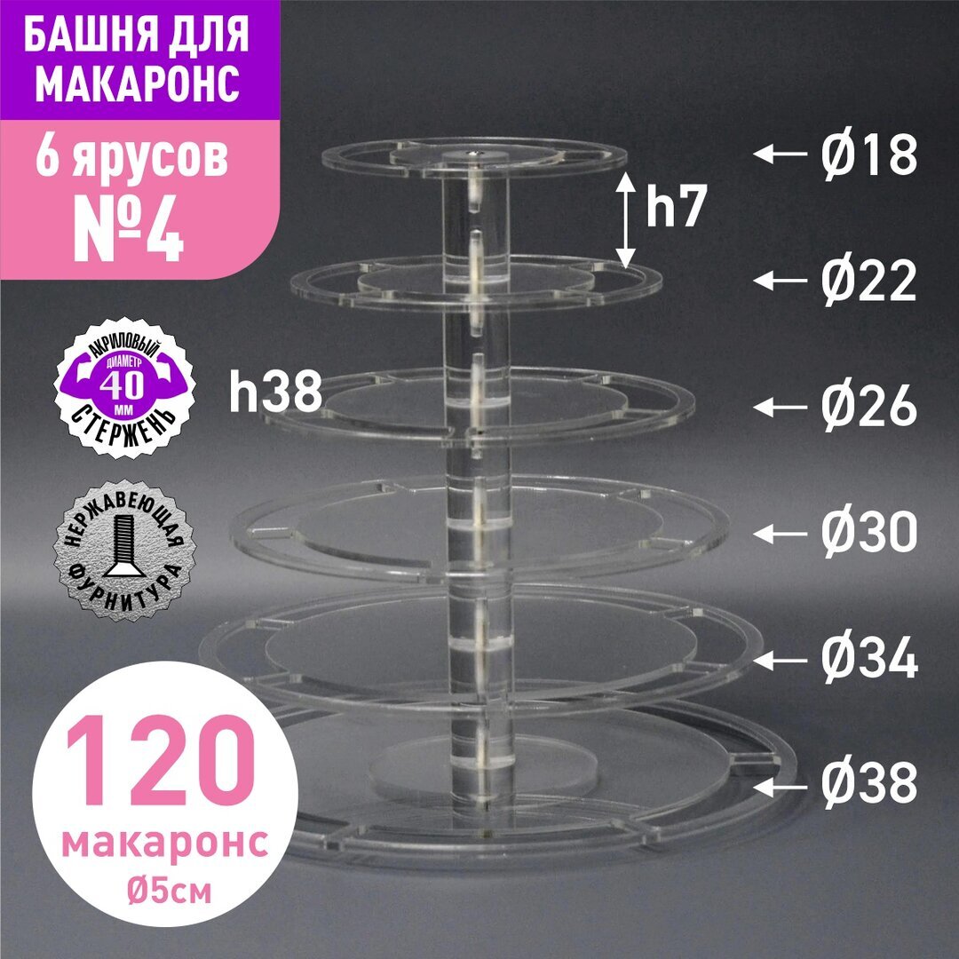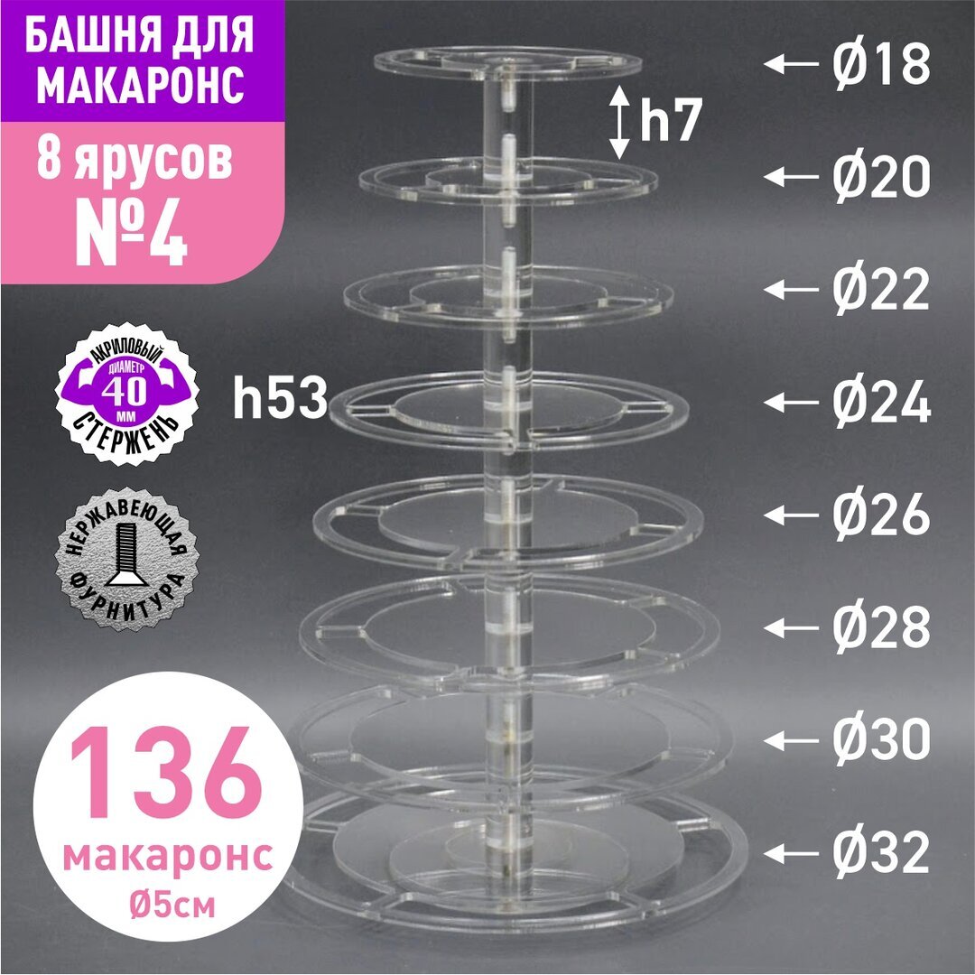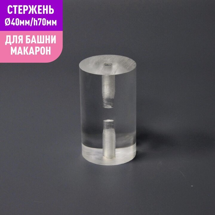 Акриловый стержень с резьбой М6 диаметр 40мм, длиной 70мм для башни макаронс