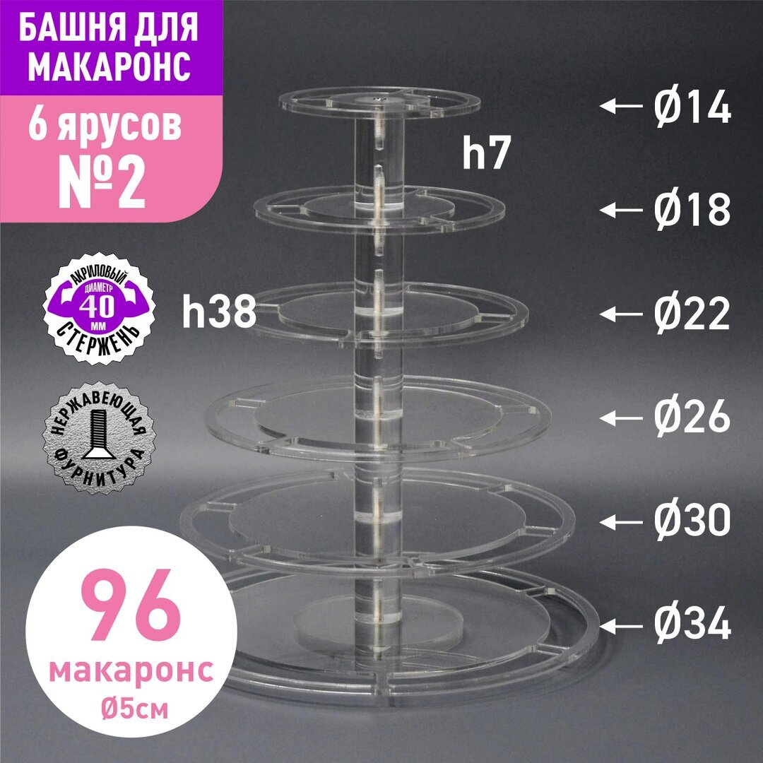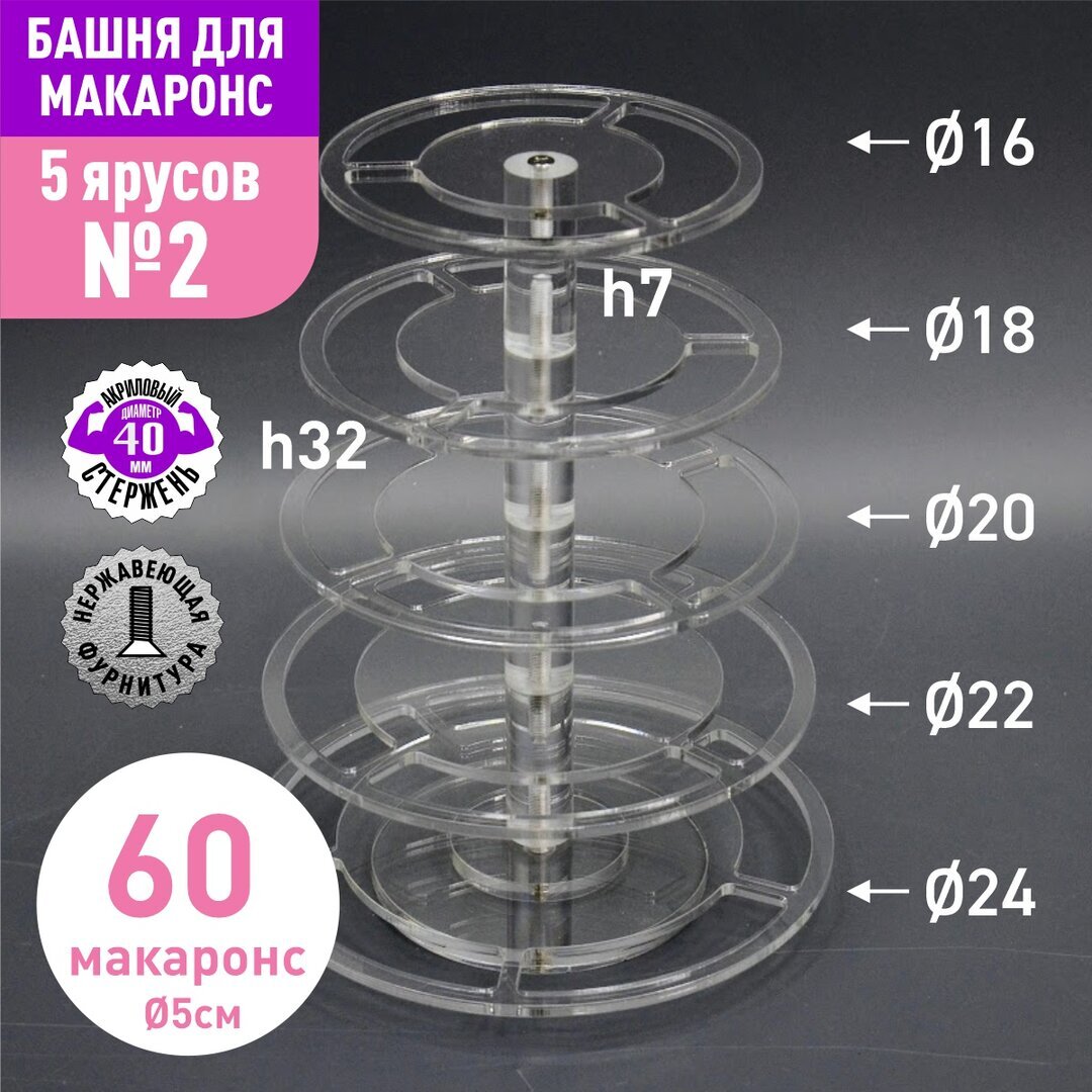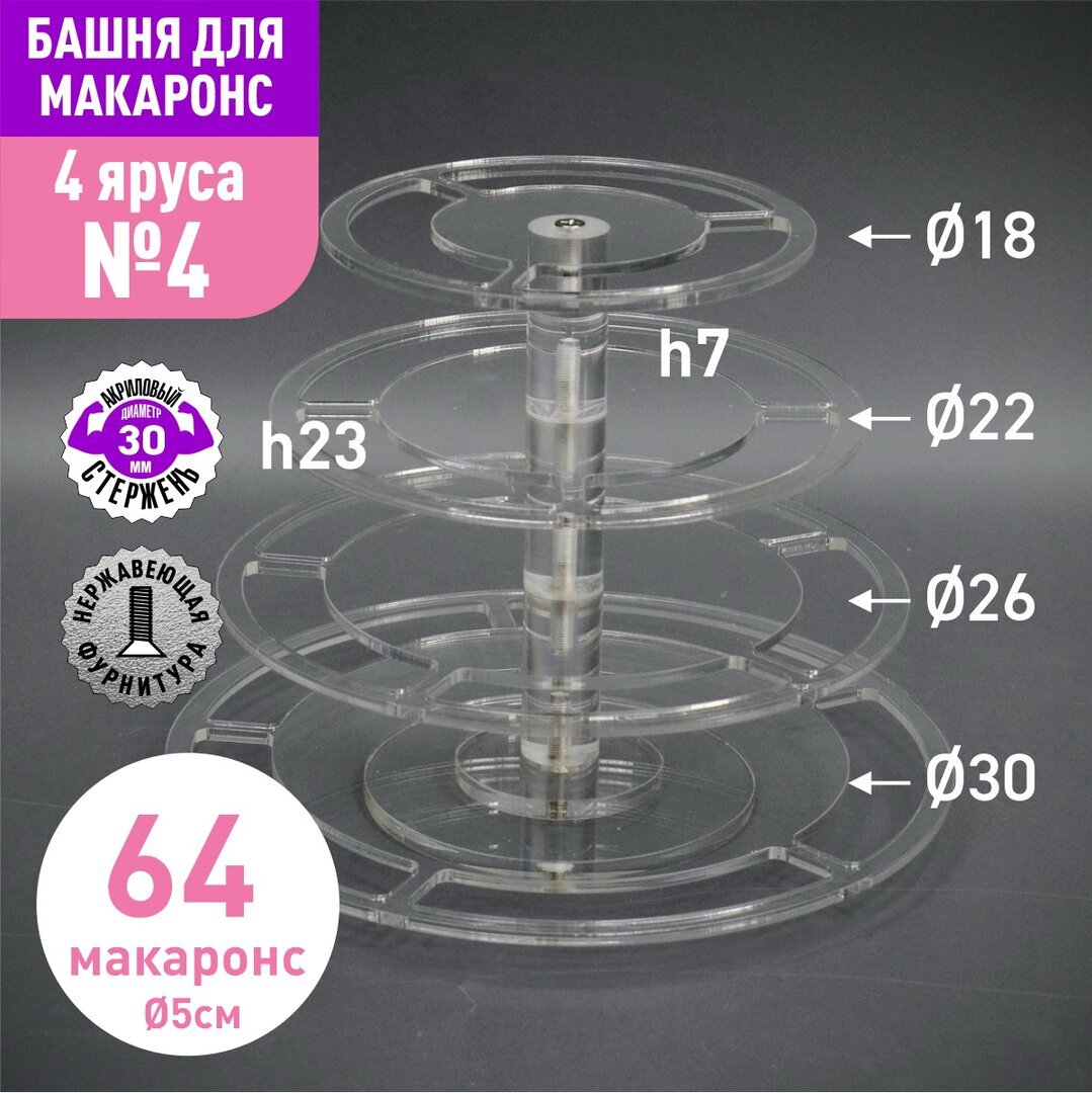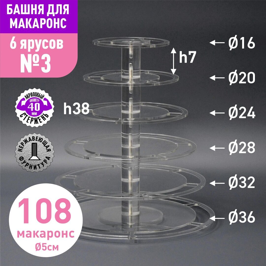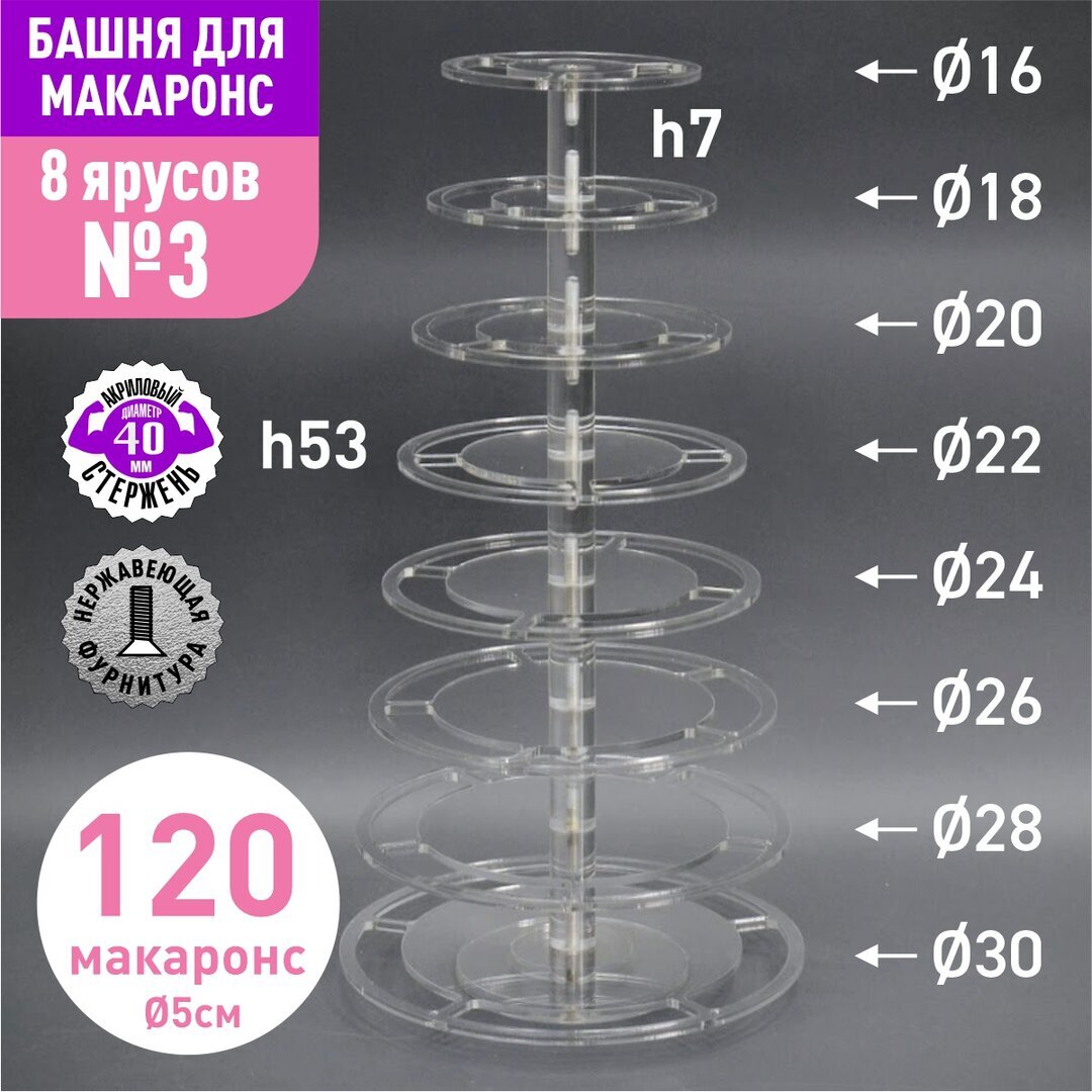 Акриловый стержень с резьбой М6 диаметр 40мм, длиной 70мм для башни макаронс