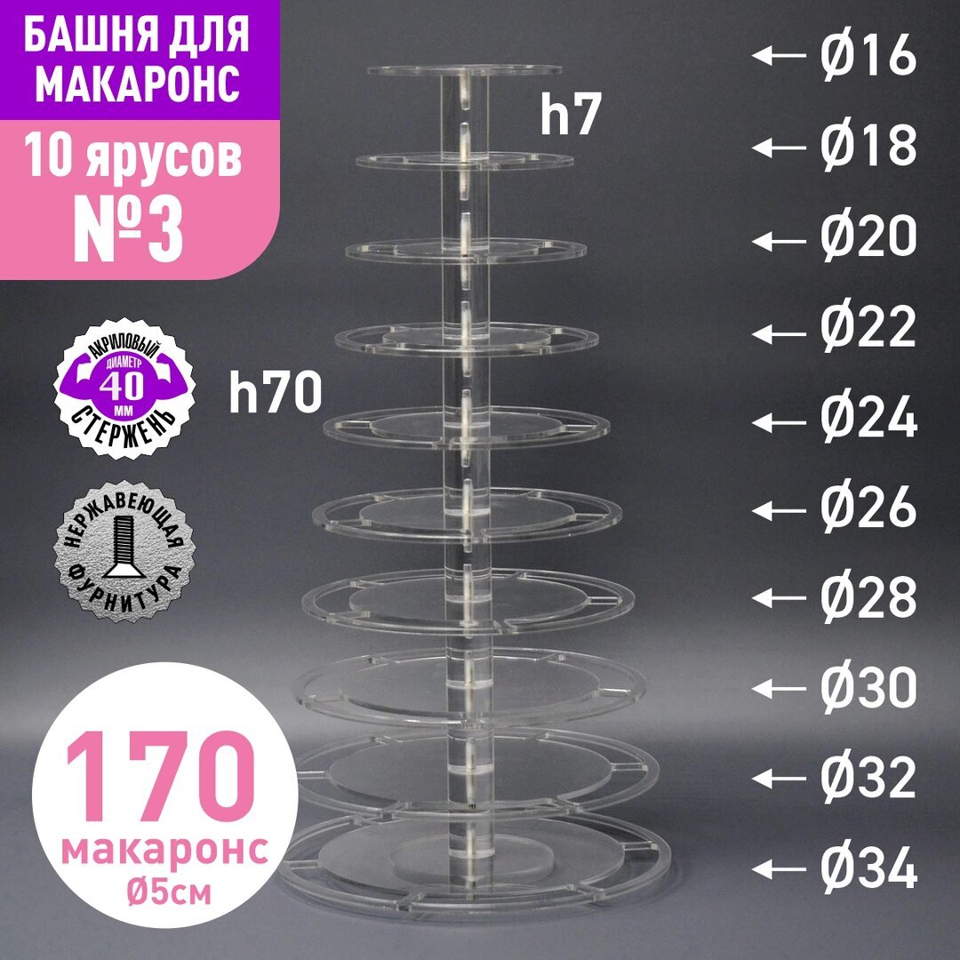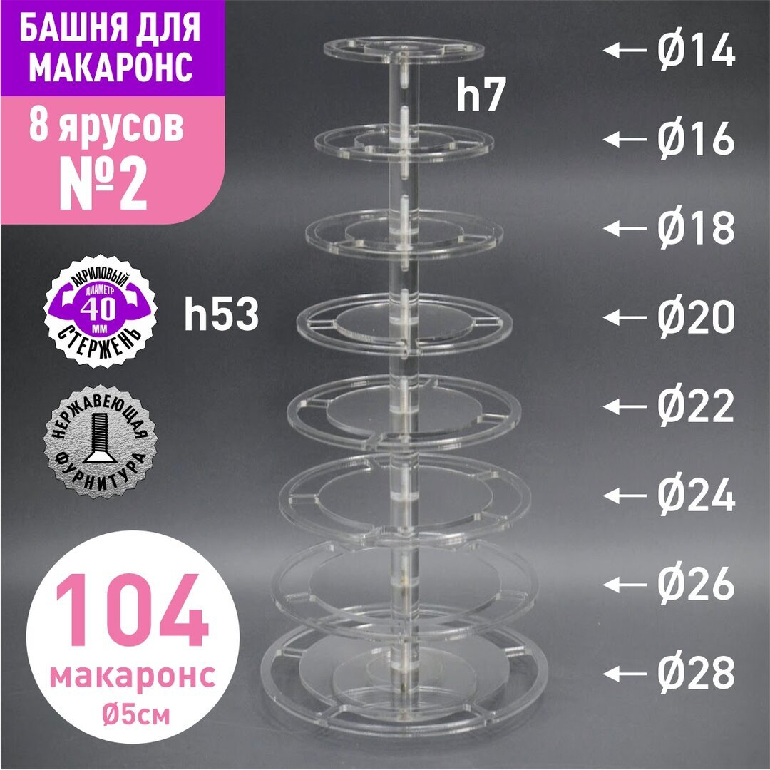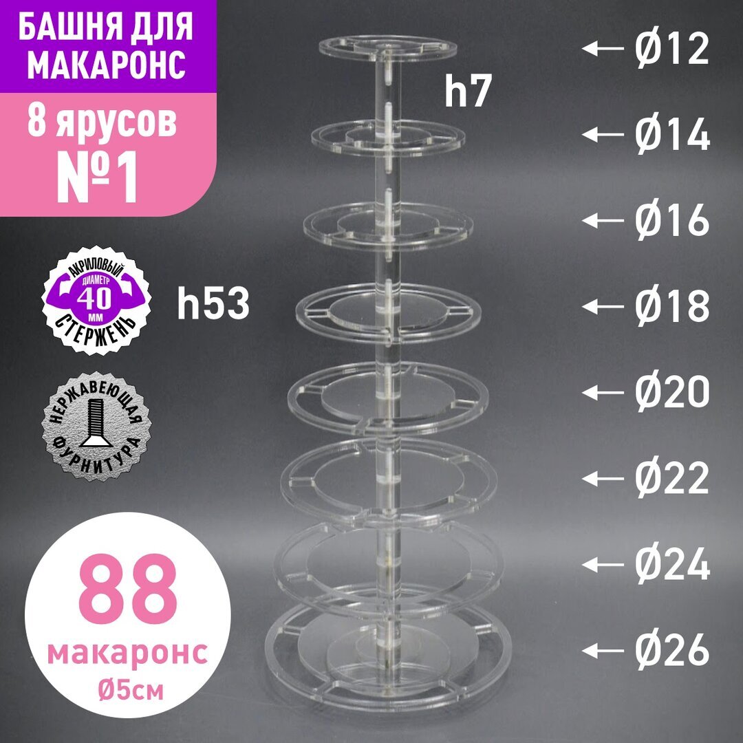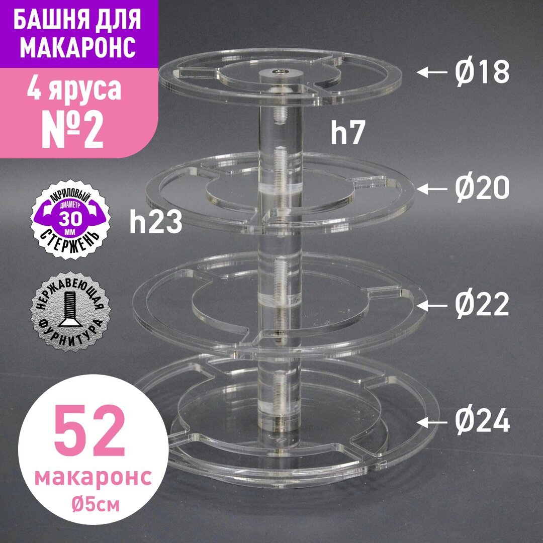 Акриловый стержень с резьбой М6 диаметр 40мм, длиной 70мм для башни макаронс