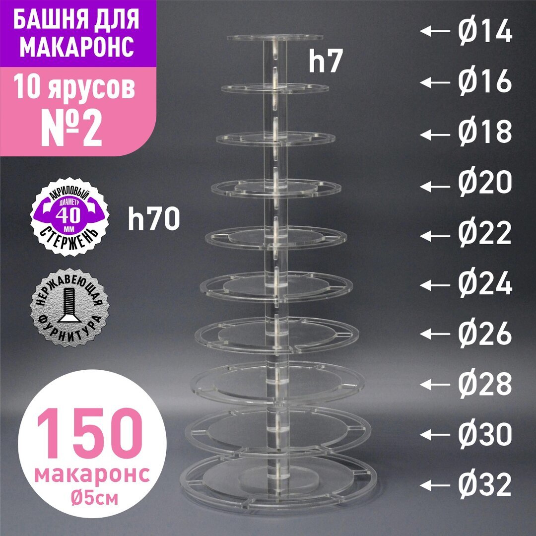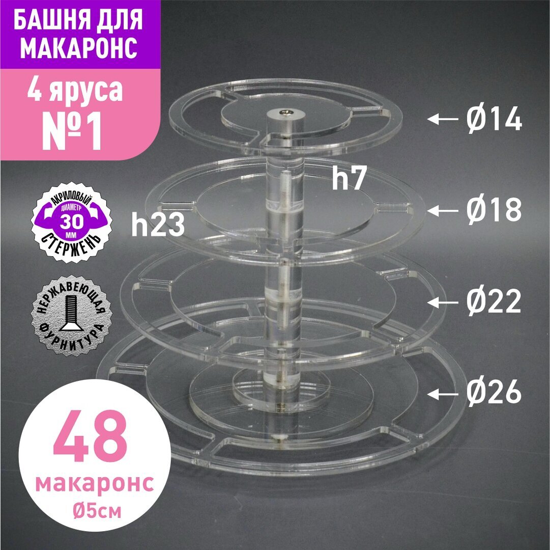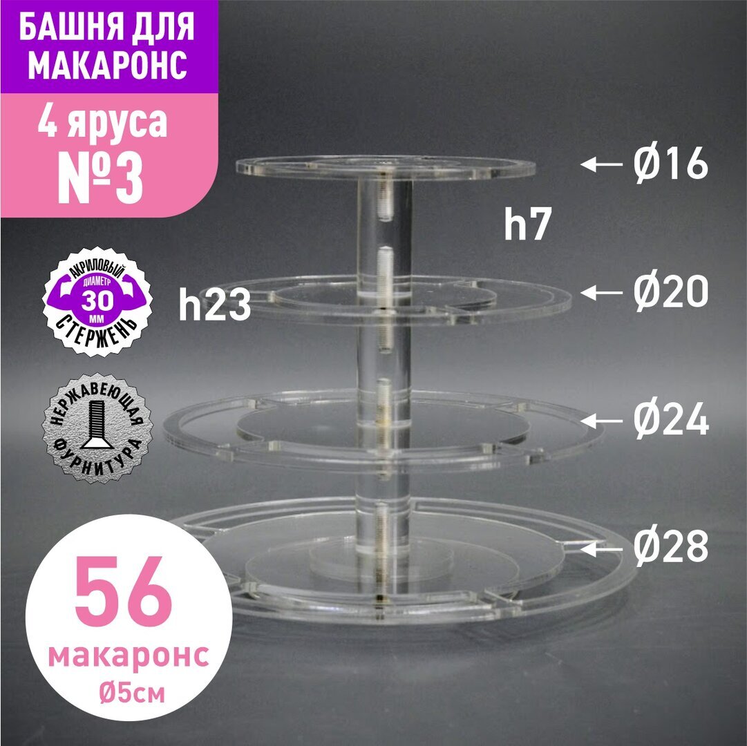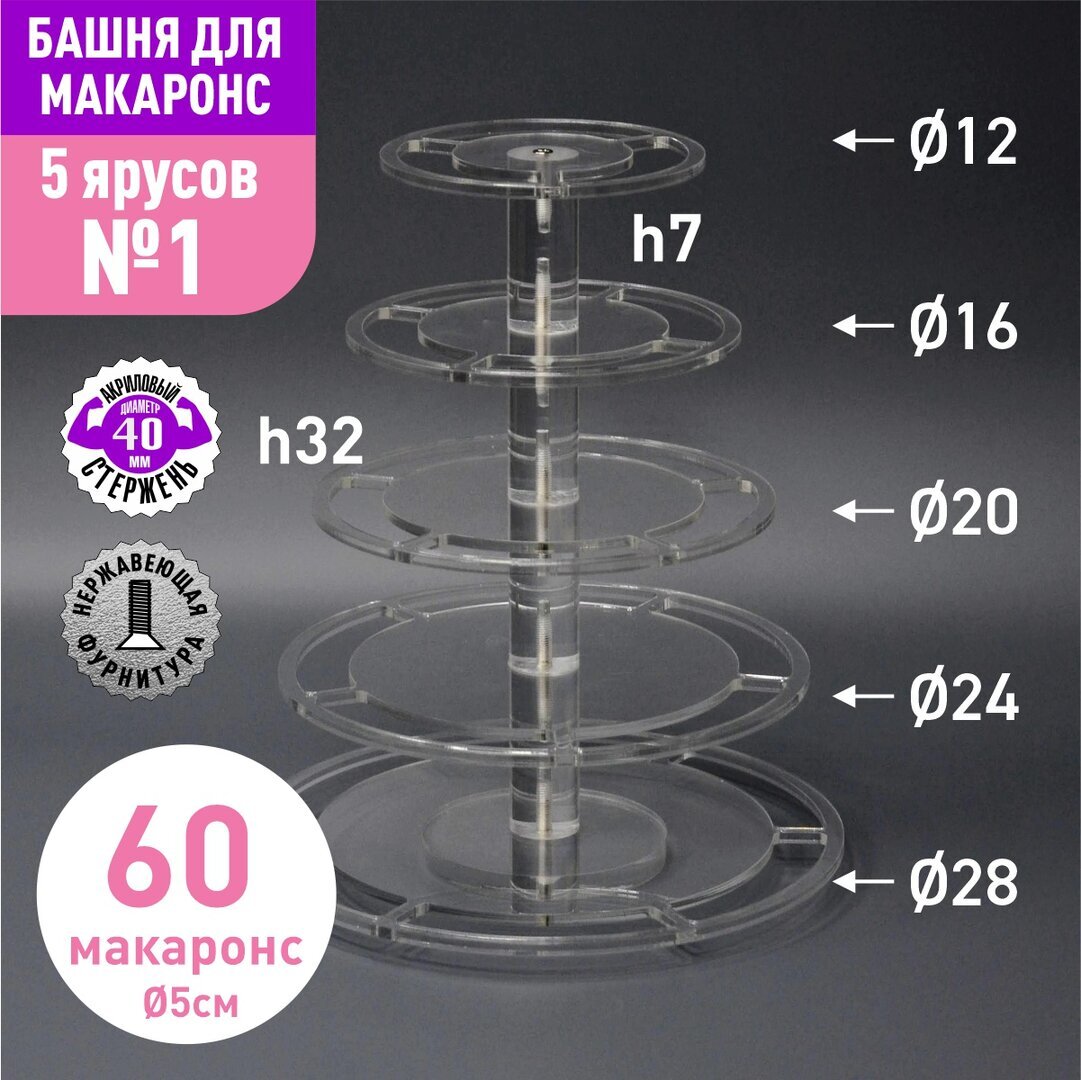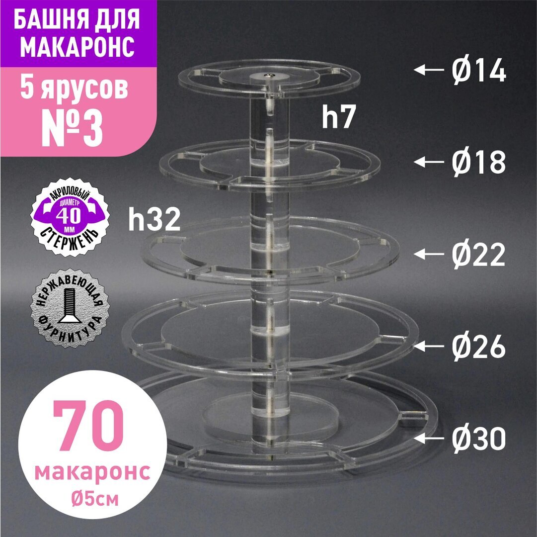Акриловый стержень с резьбой М6 диаметр 40мм, длиной 70мм для башни макаронс
